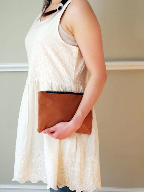 質感の違ったレザーをたくさん使っている彼女は普段からレザー好きなのですが、ちょっと遊びに行く時にちょうど良い大きさのクラッチ風の大きめポーチをmig用に作ってくれました。